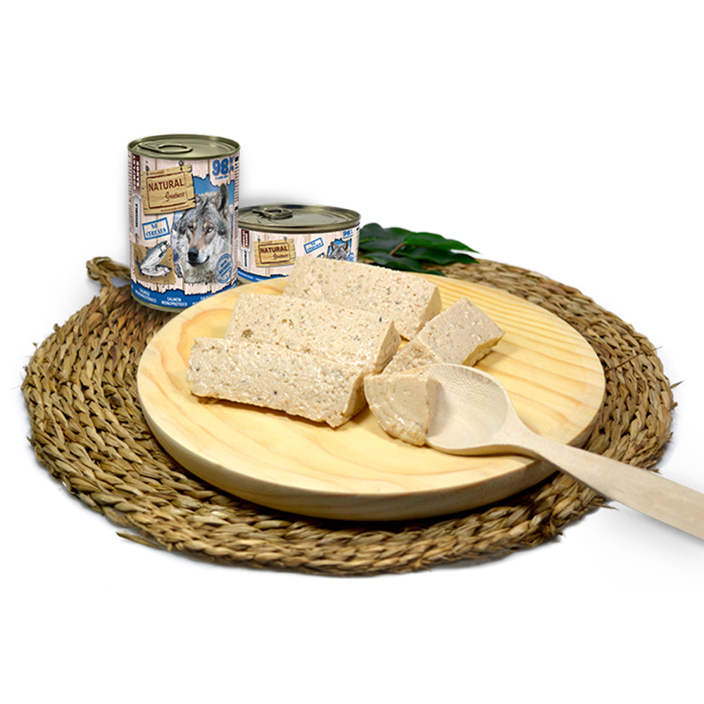 Salmon single protein Recipe uses fresh salmon meat as the only source of protein.